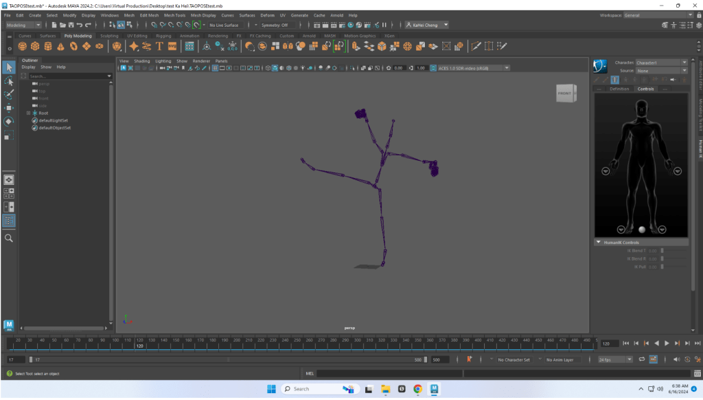 Demonstration of Zhong Pose animation recording in Motive, software of OptiTrack.