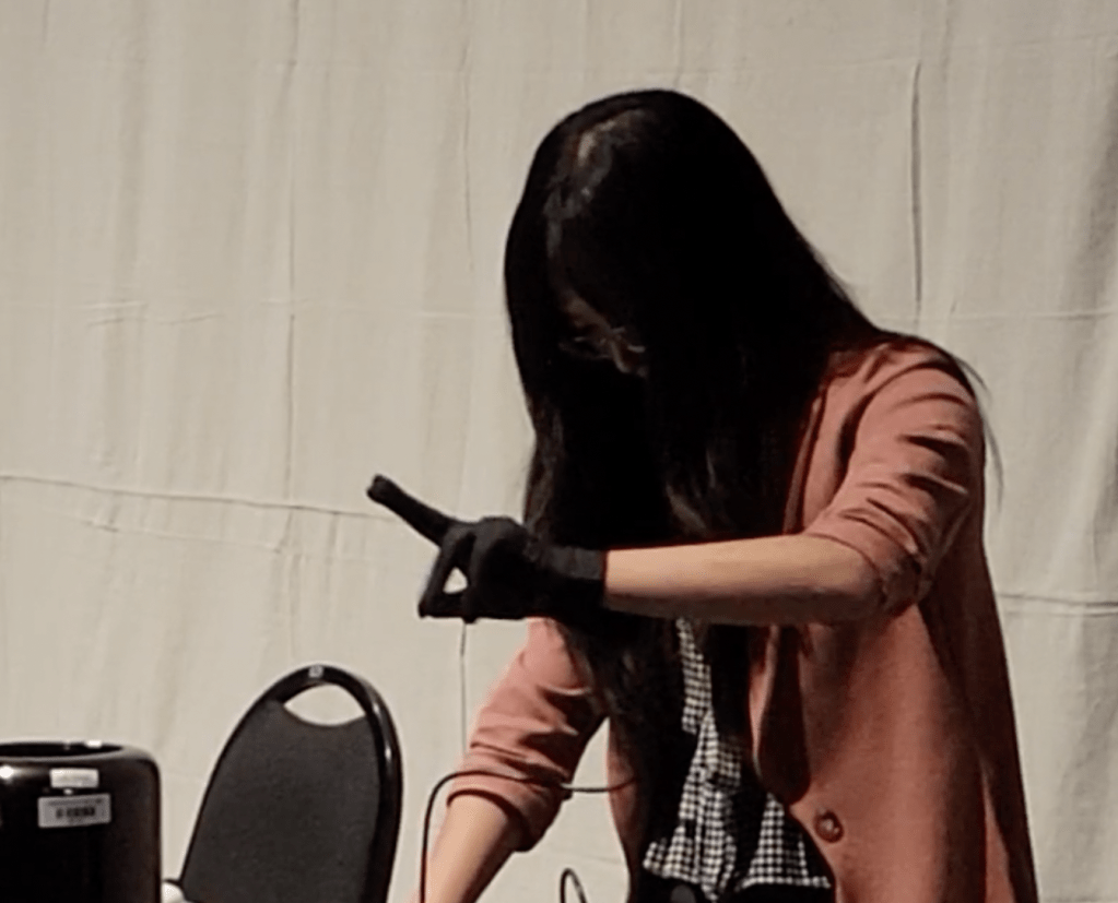 COVID-19 Genomic Navigator is a motion sensing glove that sonifies the protein genomic data of COVID-19, which was extracted from The National Center for Biotechnology Information (NCBI) and Protein Data Bank (PDB). The PDB files show the structure of the proteins at the atomic and amino acid scale, which contributes to the multi-dimensional parameter mapping of the synthesized sounds. Three sets of data were selected in the project, including 7B3C, 7D4F, and 7KRP, which are all RNA-dependent RNA polymerase (RdRp) related. It was formatted into prn or csv files and was read in Max3 patches, which sends OSC message to Kyma (Symbolic Sound)4, which performs audio signal processing in multiple synthesizers through parameter mapping. The three protein data sets distribute evenly in space while the motion sensing glove navigates and sonifies the data in both physical space and time synchronously. As shown in Figure 1, the motion sensing glove captures the data of hand gestures and movement, then sends from the Arduino to Max patch through OSC messages, which controls the graphical user interface (GUI) in Max that manages the parameters of the synthesizers in Kyma through OSC messages. The project also incorporate machine learning, which interprets the data from the glove, specifically.